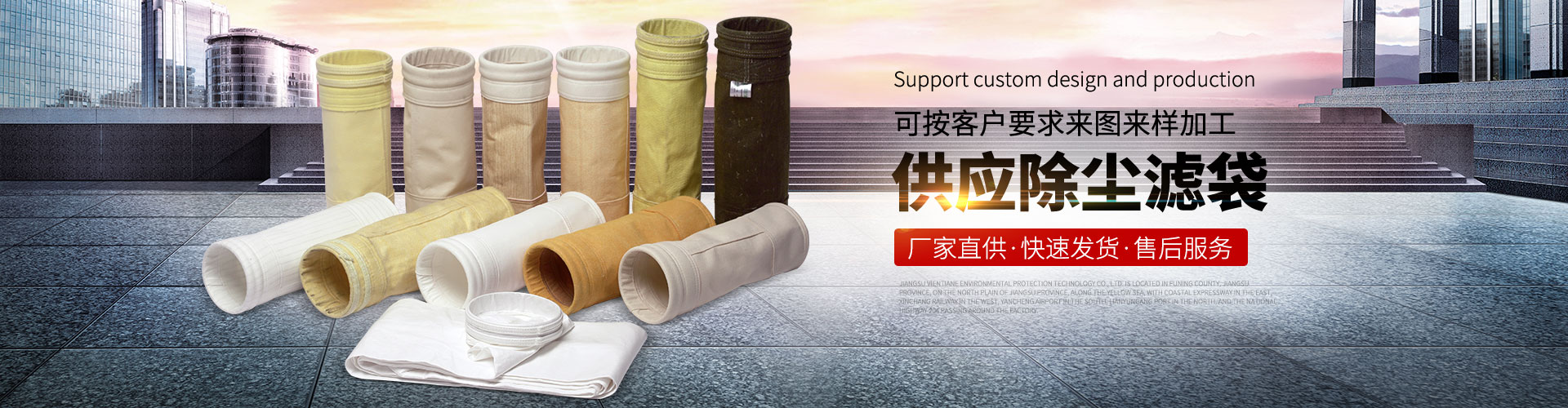 江蘇萬象環保科技有限公司主要從事各種除塵器(收塵器、積塵器),袋式除塵器、氣箱脈沖除塵器、單機除塵器;濾袋(除塵布袋、除塵濾袋、除塵袋、過濾氈、過濾布、收塵袋、積塵袋),高溫濾袋系列如氟美斯針刺氈濾袋、美塔斯針刺氈濾袋、玻纖針刺氈濾袋、玻纖布;中溫系列如PPS針刺氈濾袋、P84針刺氈濾袋、亞克力針刺氈濾袋;常溫系列如滌綸針刺氈濾袋、丙綸針刺氈濾袋、覆膜針刺氈以及涂層、拒水防油、防靜電系列和各種龍骨、電磁脈沖閥、控制儀等生產與加工,是 大型濾料廠家之一,員工余人,企業擁有專業檢測中心,具有完備的專業安裝和售后服務體系。